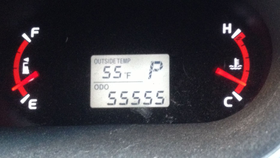 when my car odometer flipped to the 55555 mile mark. Yesterday, after driving